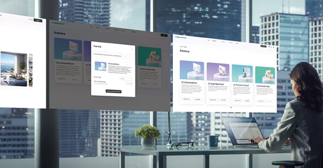 Select and purchase or subscribe to the necessary solutions based on quantity, type, grade, and duration of licenses according to the usage environment, similar to buying products online. Solutions purchased or subscribed to can be easily integrated with LG devices* on the same website.
